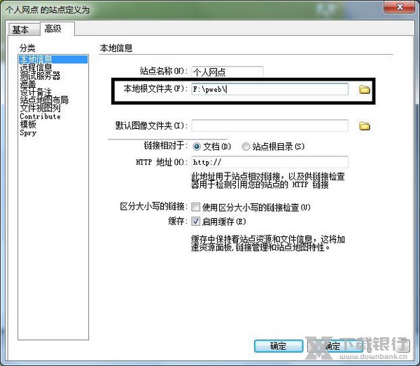 7、在“本地根文件平夹”项选择“D:\pweb\”,其他项为默认值,单击“确定”按钮。