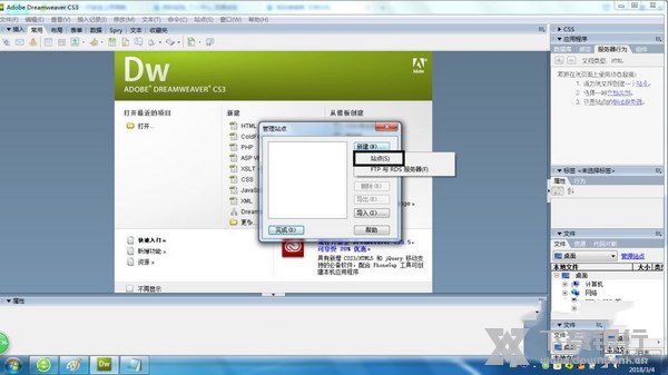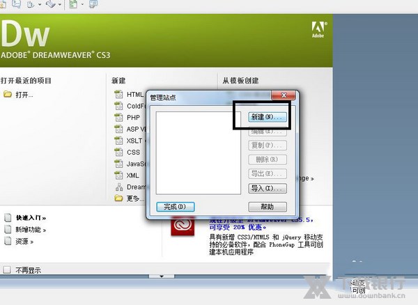 3、在“管理站点”对话框中,单击“新建”按钮。