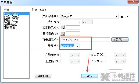 打开页面属性后,选择外观分类,然后点击背景图像后面的浏览,选择背景图片,如下图所示。
