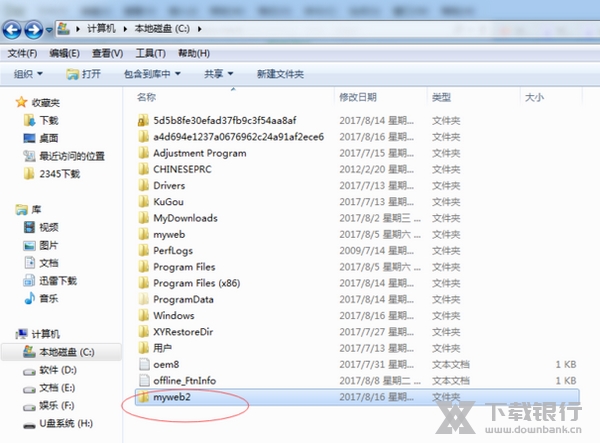 1、先在电脑中的C盘下创建一个“myweb2”文件夹。