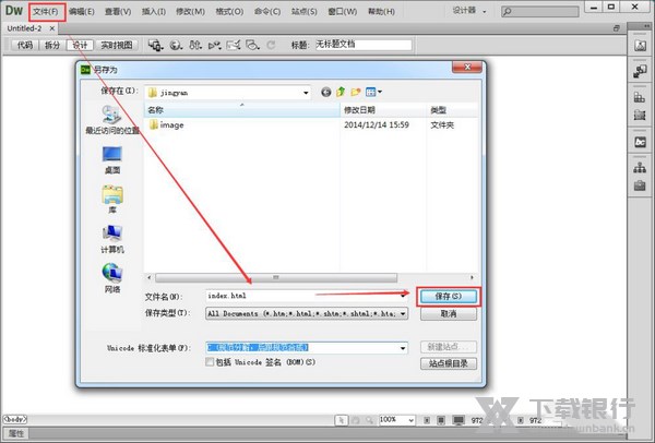 新建HTML页面后,点击文件--->保存,把新建的HTML保存下,不然后面做页面背景图片不行。如下图所示。