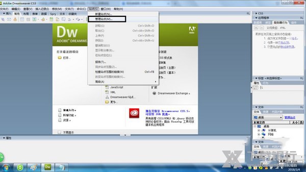 2、在“站点”下拉菜单中选择“管理站点”命令。