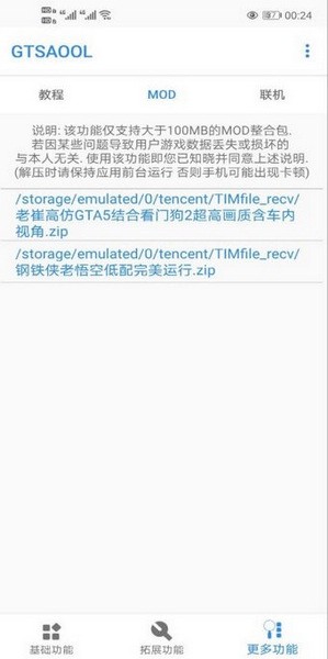 4、下载的MOD整合包会这里显示,点击可以解压整合包至游戏目录,长按可以删除。解压过程会提示选择GPU格式,自己选择与手机对应的即可。