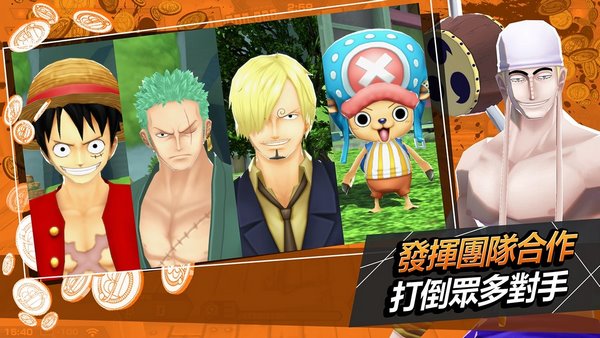 游戏的最大特色是即时动作玩法,支持4v4团队对战,贝里(游戏内货币)的争夺也会影响胜负。此外,地图中还有各种道具和机关,善用这些元素能为队伍带来优势。剧情方面还原了草帽海贼团的成长故事,并加入“场景卡片”系统,重现经典漫画情节。