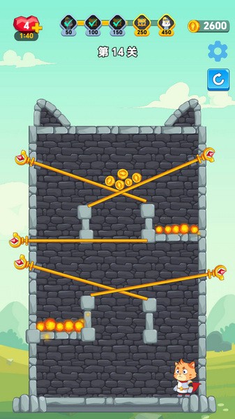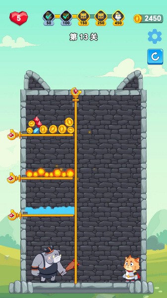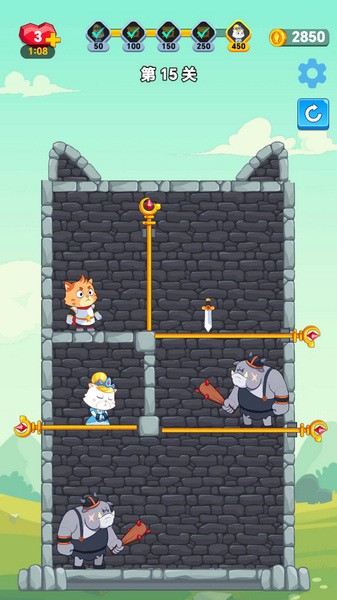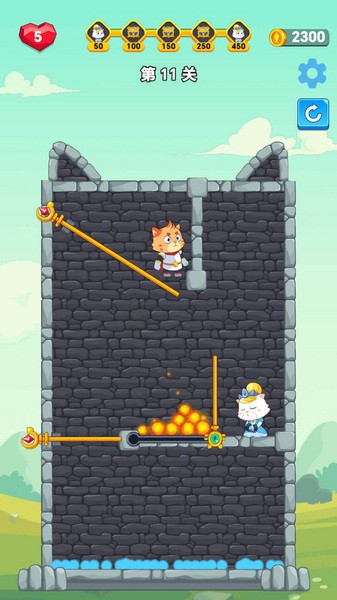 救救喵星人是一款有着益智拉针玩法的休闲闯关游戏,玩家们只需要拉动场景中的拉环就能够改变当前的处境,而正确的拉动顺序对于游戏最后的结果至关重要,而作为喵星人勇士的玩家们只有顺利救出公主才能够获得胜利。大量的挑战关卡再加上精心设计的场景,大大增加了游戏趣味性的同时,玩家们也需要动动脑筋来找出正确的拉动顺序。
