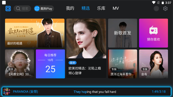 2、新歌速递我们会在第一时间为您推荐新歌;