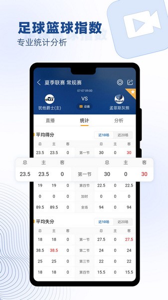 【实时比赛】足球/篮球动画直播,球队赛程预告,关注比赛实时接收赛事动态变化。