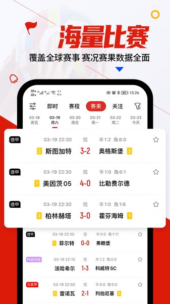 4、帮助您全面了解比赛,赛中即时比赛动态数据,赛后赛果信息