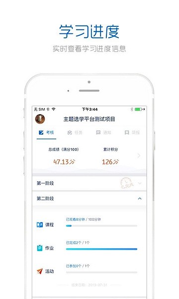 3、用户在软件中能够清晰看到自己各个阶段的学习任务完成情况,快速了解;