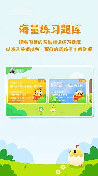 拥有海量的音乐知识练习题库以尿音基模拟考,更好的帮孩子牢固掌据
