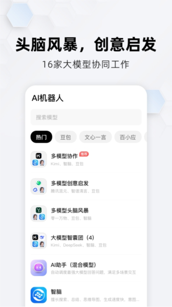 6、AI机器人功能让你随意切换各大主流大模型进行多模型协作搜索,让搜索内容更有参考价值