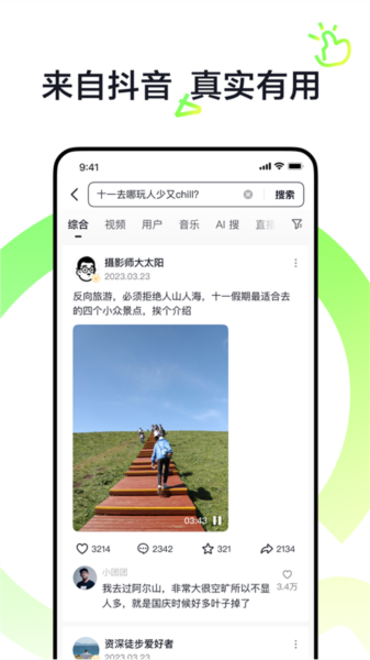 这里的每一条搜索结果都源自抖音大家庭,由亿万用户亲身实践后的真实分享,无论是美食探店、旅行攻略还是生活小窍门,都能让你收获满满干货,少走弯路