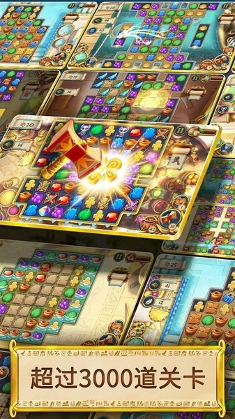 3、每当闯关成功都会奖励宝石,玩家可以用这些宝石来帮助法老复兴饱遭破坏的文明。