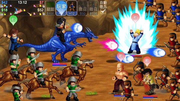 6、战争:在战场上赚钱招兵、攻城夺营,与百人大战。