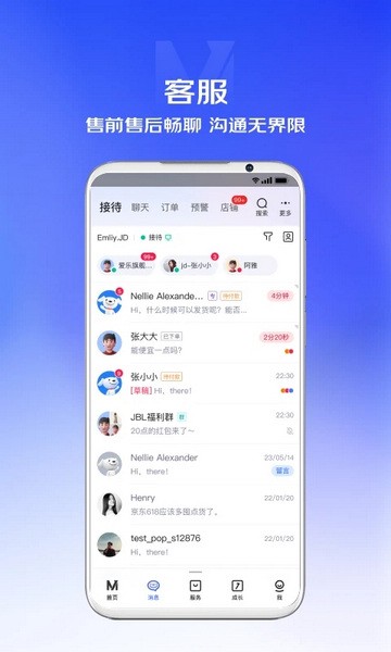 京东咚咚手机版是一款专为京东商家设计的管理工具,操作简单方便,打开手机就能轻松掌握店铺经营状态。它的界面设计清爽简洁,所有重要内容一目了然,还能及时了解物流动态和处理顾客咨询。