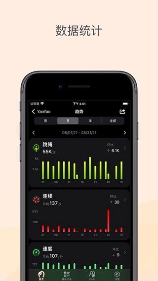 5、自动记录每天的跳绳次数和燃烧的热量,养成锻炼的好习惯。