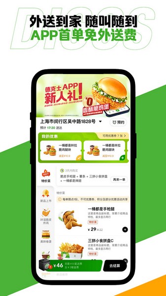 吃炸鸡汉堡,就来德克士官方APP下单!