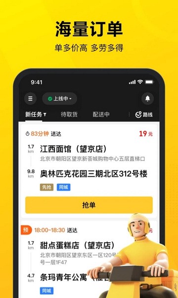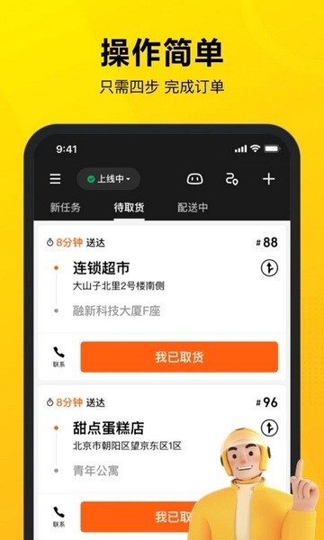 1、能在线管理订单,能稳定的配送。能保障兼职的质量和效率有序的接单;