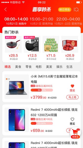 3、查看更多的精选商品列表,选择需要的商品并马上抢购