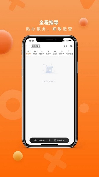2、拥有多种订单状态栏目,订单中心提供了待接单、待取货以及配送中不同的订单状态栏目;