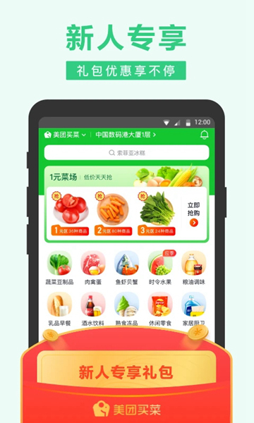 美团买菜是一款主打生鲜食品购物的软件,如果不想出门,却又想吃到新鲜食材,那么这款软件绝对是你的宅家不二选,其界面简洁清爽,商品丰富齐全,汇集海量精选优质商品,种类繁多,囊括新鲜水果、时令鲜蔬、禽鱼肉类等应有尽有,且所有商品均由源产地直采,拒绝隔夜菜,助你吃到真正鲜!且价格实惠性价比超高,更有各种促销活动带来更优惠的价格,轻松享受品质好物!同时,软件在全国以市到县到分公司进行布局,确保用户下单,能极速送鲜上门,让你足不出户享受品质生活!此外,更有各大菜系的菜谱推荐,若是不知道晚餐吃啥,就到这里看看吧!