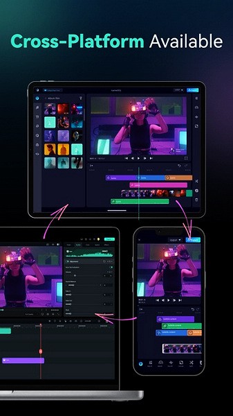 -PIP(画中画):添加多层视频、图像、贴纸、特效、文本等。