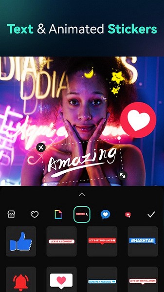 -在视频和照片上添加动画文字或有趣的贴纸。