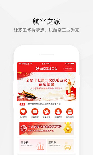 航空之家app是一款专门为航空人们准备的工会服务软件,软件内为大家准备了许多实用且便捷的功能那,其中包括为飞机消费者提供贯穿选机、买机、用机、置换等一站式服务,提高大家飞行服务的品质,同时还能解决过程中乘客们不同的需求和问题。此外,航空之家也对员工们的身体状态十分关注,还为大家准备了许多福利和优惠。
