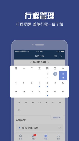 2、移动审批:支持多级审批,实时查看消费明细,审批预订及报销申请。