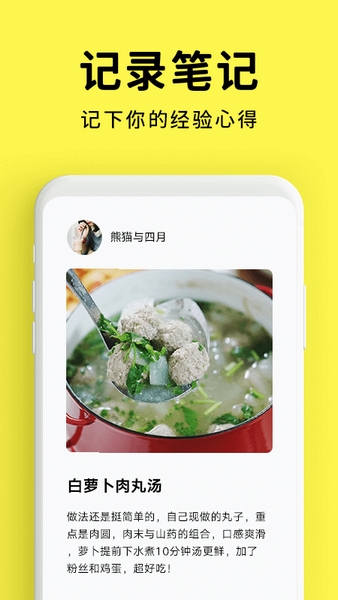 记录灵感:跟做菜谱可以随时添加文字笔记,或上传图片记录下厨记忆。