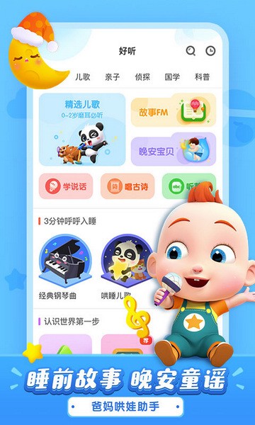 我觉得这款软件真的挺方便的,特别是离线下载功能,可以随时随地给孩子播放。而且它还有睡眠控制功能,帮助孩子养成良好的作息习惯。最棒的是,里面的内容非常丰富,包括儿歌、动画、故事和英文磨耳朵等,几乎涵盖了孩子的各种需求。