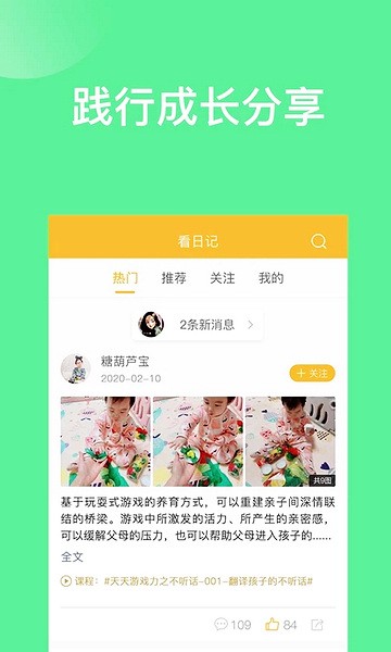 3、开设了丰富的看日记中心,这里面展示了平台用户宝宝们的成长日记动态;