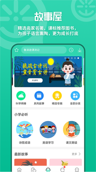 在故事页面可以看到各种系列故事,可查看精选专题,收听最新故事