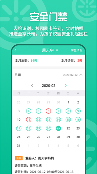 还可以通过app进行请假,在app上打考勤;