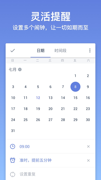 自定义设置重复提醒方式,不会错过任何重要事情。