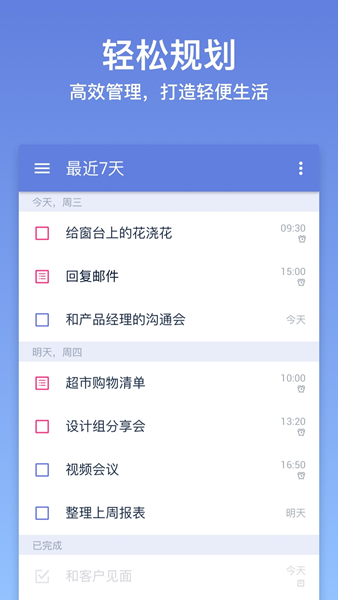 在手机、平板、网页等多个设备云同步,随时随地查看日程安排和备忘事项。