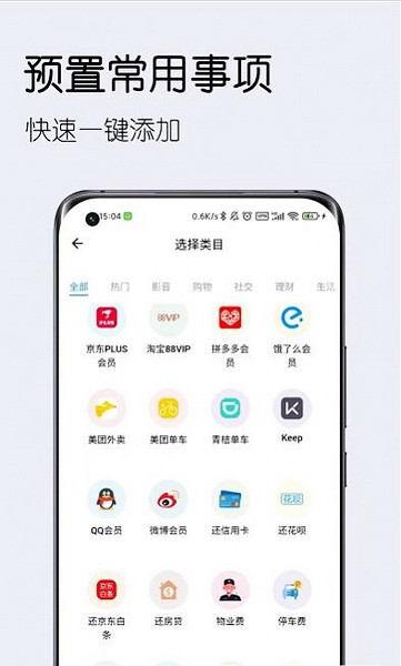 预置了上百个事项,快速一键添加适合自己的事项。比如:会员订阅管理,信用卡还款,隐形眼镜有效期,证件管理,车险审车等,仍在不断完善中。