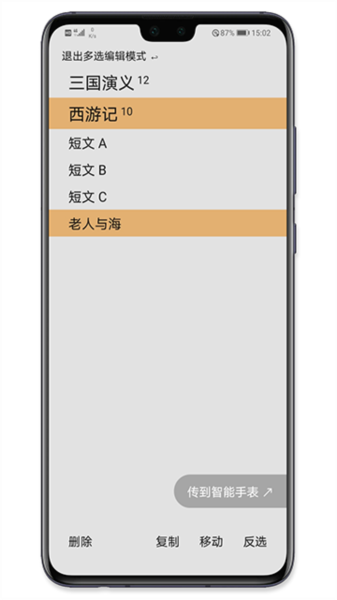 3、喜欢的书籍可在应用中移动、复制、传输等操作,方便在手表上阅读;