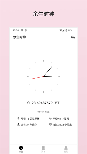 余生清单是一款倒计时提醒软件,主要用来记录用户想做的事情,比如看的电影、去的地方或者想完成的目标。它提供很多模板,方便用户选择,然后用文字和图片记录下这些事情,设置时间后就会自动提醒你去做。我觉得这个软件挺有意思的,因为它能帮助人们规划生活,记录那些有意义的事情。