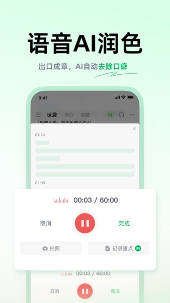 话袋app是一款功能强大的笔记工具,支持多种记录方式,比如文字、语音、图片和位置等,还能快速启动并云端同步,方便跨设备查看。它提供了创建、分类、搜索、收藏和管理笔记的功能,操作简单又高效。我最喜欢它的语音输入,有时候懒得打字,直接说话就能记录下来,真的挺方便的。