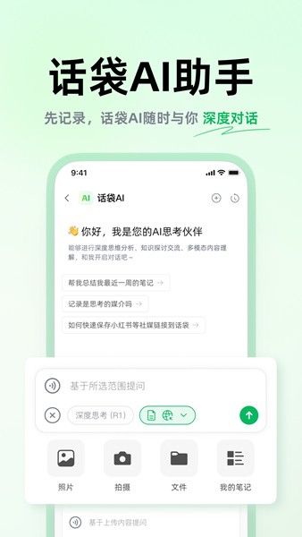 话袋app是一款便捷好用的笔记记录工具平台,通过多种多样的笔记记录方式轻松记录笔记,实现一站式的笔记记录管理,随时随地都能够进入应用记录笔记,快速捕捉记录最新的思维想法,轻松引用历史笔记,还能快速关联和绑定笔记,让笔记拥有连续性。