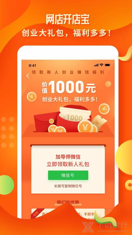 网店开店宝是一款主打网店创业辅助服务的软件,如果你想从事电商行业,但是又无法制定目标计划,那么不如实时这款软件吧!这里汇集了众多专业指导老师为你提供合理的经营思路,同时还能获取海量营销知识,以便用户快速入门!同时加入平台找到导师,还能获取价值1000员的创业大礼包,助你一臂之力!
