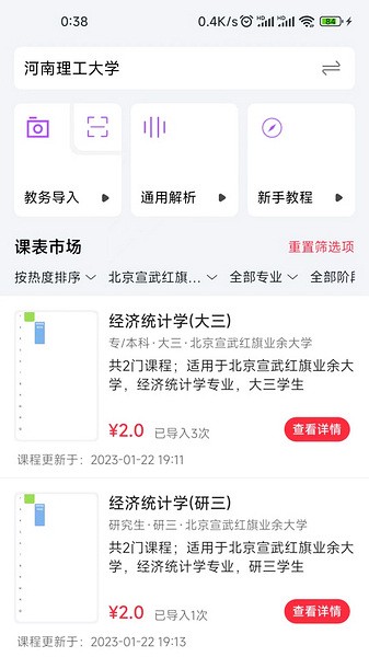 支持多个学校导入课程。