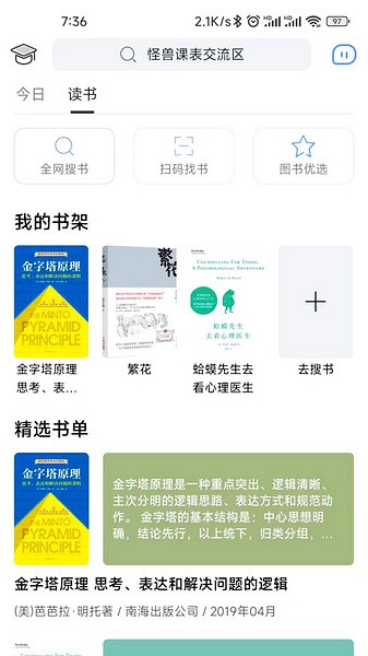 9、读书/搜书:支持全网搜书、扫码找书,同时支持加入书架、推荐书单等功能,图书笔记以及书签功能即将支持。
