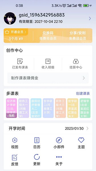 10、课表市场功能:支持用户制作课表并公开赚取佣金,弥补教务导入系统适配不足的问题。