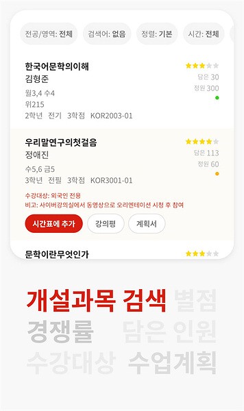 - 讲座时间表查询:搜索公开课程并添加到时间表;