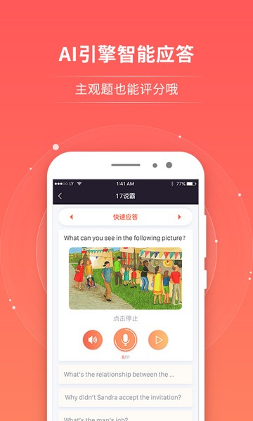 2、【智能听说】提供标准发音训练,分析发音问题及掌握程度,练就纯正发音。