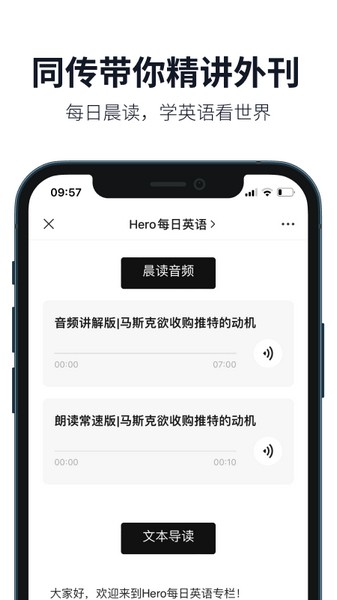 原文和译文搭配,保证不会漏掉任何内容,实时单词查询保证用户最大程度听懂