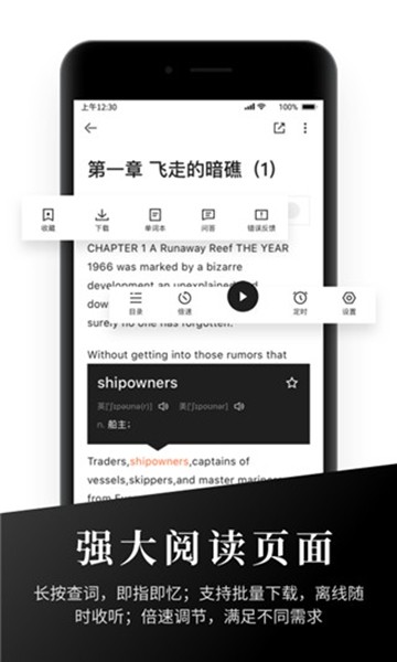 这款有声英语阅读app简直是个宝藏!它不仅能让用户边听边读英文内容,还能通过外教朗读、跟读练习等功能提升听力和发音水平。最棒的是,它提供了海量免费资源,包括经典名著、美剧剧本、电影台词等等,满足不同水平的学习者需求。