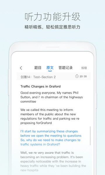 4、听力:涵盖了常见题型、场景,可进行精听、泛听学习,让学习者更好的提高听力水平;